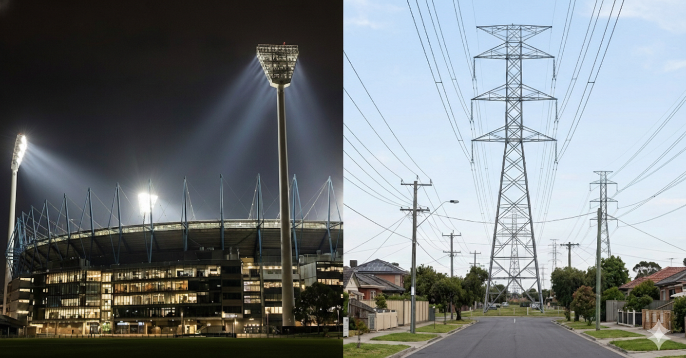 The VNI West project represents a staggering intrusion into the heart of our communities, threatening to permanently scar the landscape of Western Metropolitan Melbourne and the Western District. At a towering 80 meters tall—virtually identical in scale to the iconic MCG light towers—these massive steel transmission lines are not merely infrastructure; they are industrial giants being forced into residential backyards. This project prioritizes a flawed energy "vision" over the rights of local families, casting long shadows over our homes and forever destroying the visual amenity and character of the neighborhoods we have spent lifetimes building.